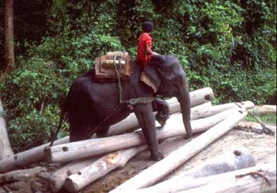 Mensch und Tier bei der Arbeit hier ist es ein Elefant der dem Menschen hilft